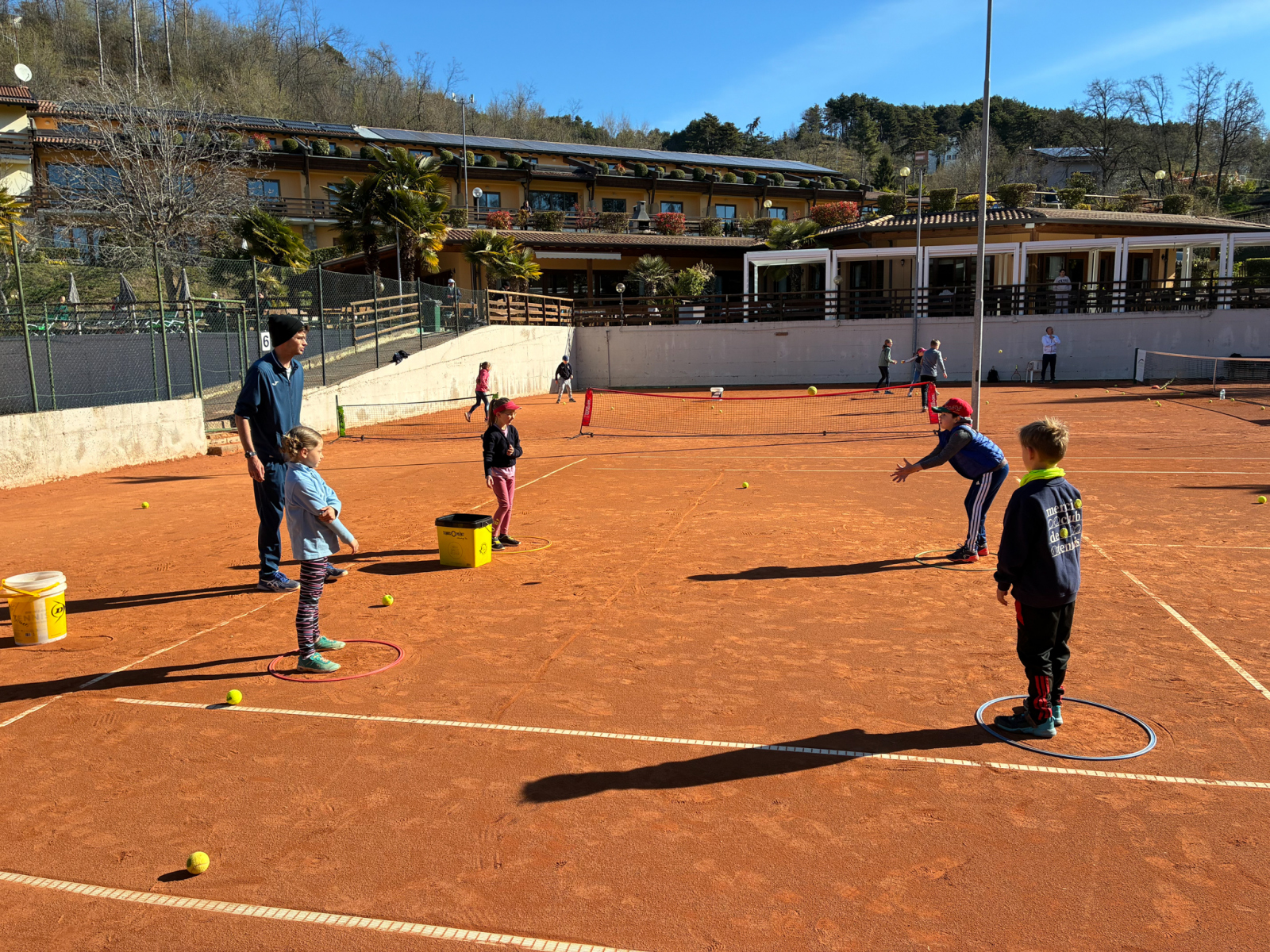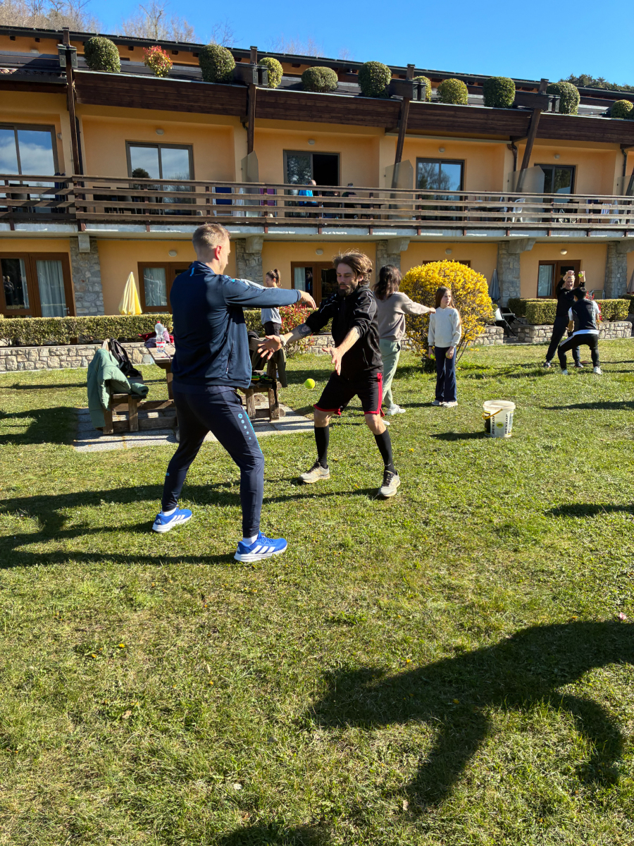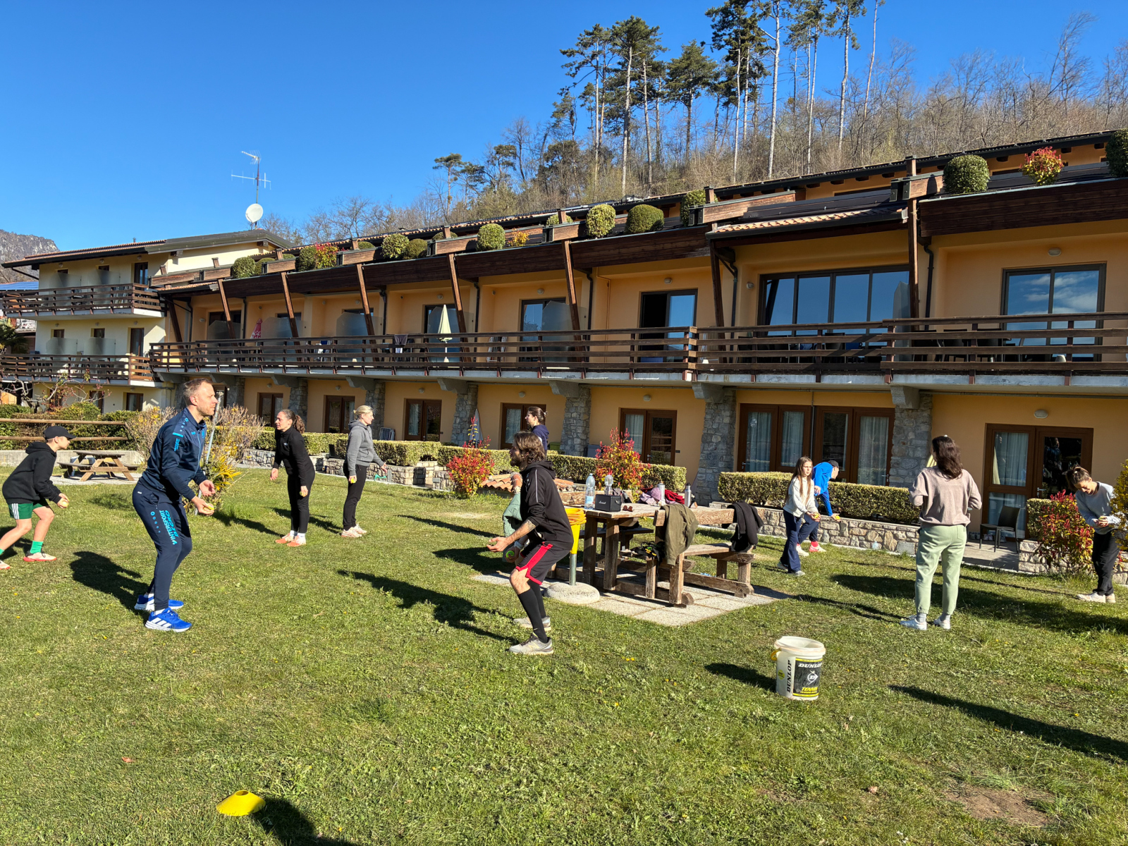 In der Residence Campi lachte mit uns eine volle Woche die Sonne. Und neben dem traumhaften Wetter konnten wir auch ein nettes Miteinander sowie viele hilfreiche Trainingssessions mit unseren fünf Trainern genießen, die insgesamt 80 Tennisspielende in 15 verschiedenen Gruppen betreuten. Hierbei gab es nicht nur Gruppen für die „alteingesessenen“ Spieler, sondern auch für den CTV-Nachwuchs, der hier z.T. Erste Tenniserfahrung sammelte und dem gelben Filzball hinterher jagte.