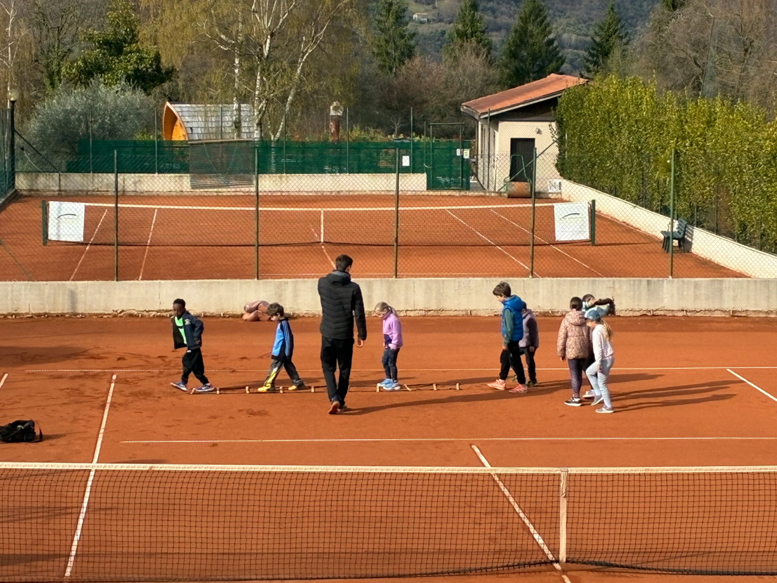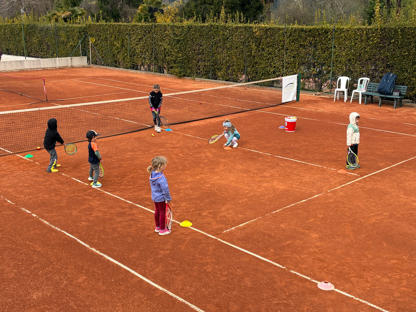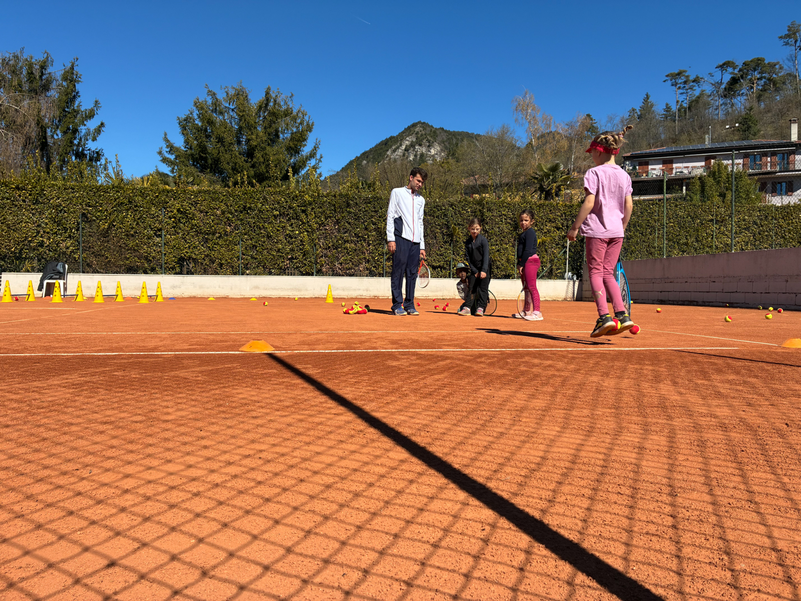 In der Residence Campi lachte mit uns eine volle Woche die Sonne. Und neben dem traumhaften Wetter konnten wir auch ein nettes Miteinander sowie viele hilfreiche Trainingssessions mit unseren fünf Trainern genießen, die insgesamt 80 Tennisspielende in 15 verschiedenen Gruppen betreuten. Hierbei gab es nicht nur Gruppen für die „alteingesessenen“ Spieler, sondern auch für den CTV-Nachwuchs, der hier z.T. Erste Tenniserfahrung sammelte und dem gelben Filzball hinterher jagte.